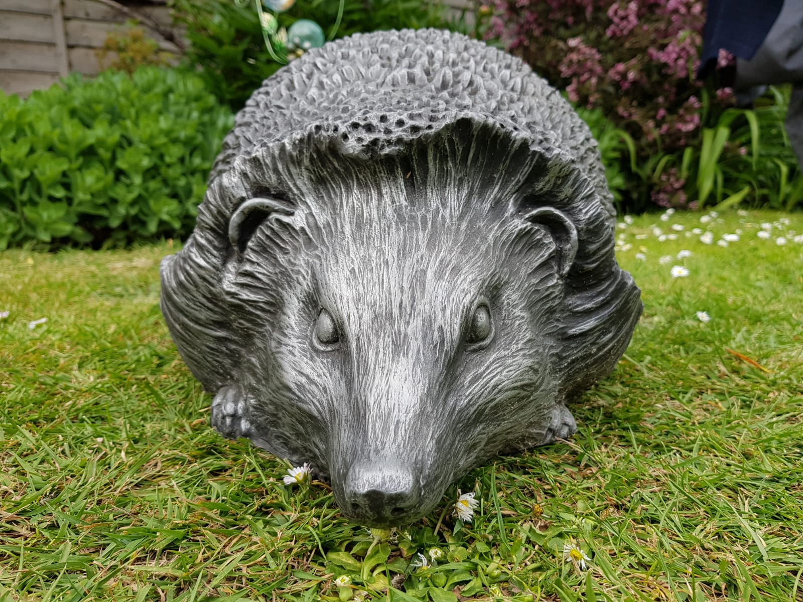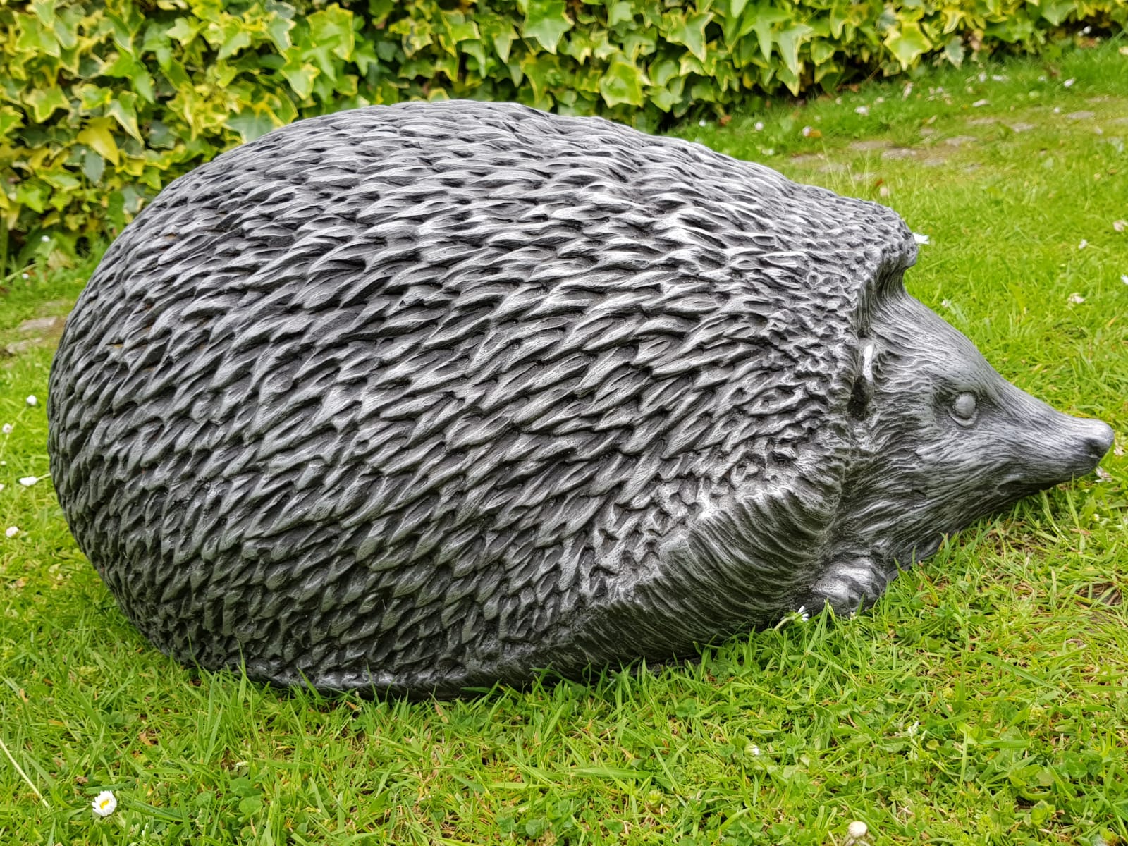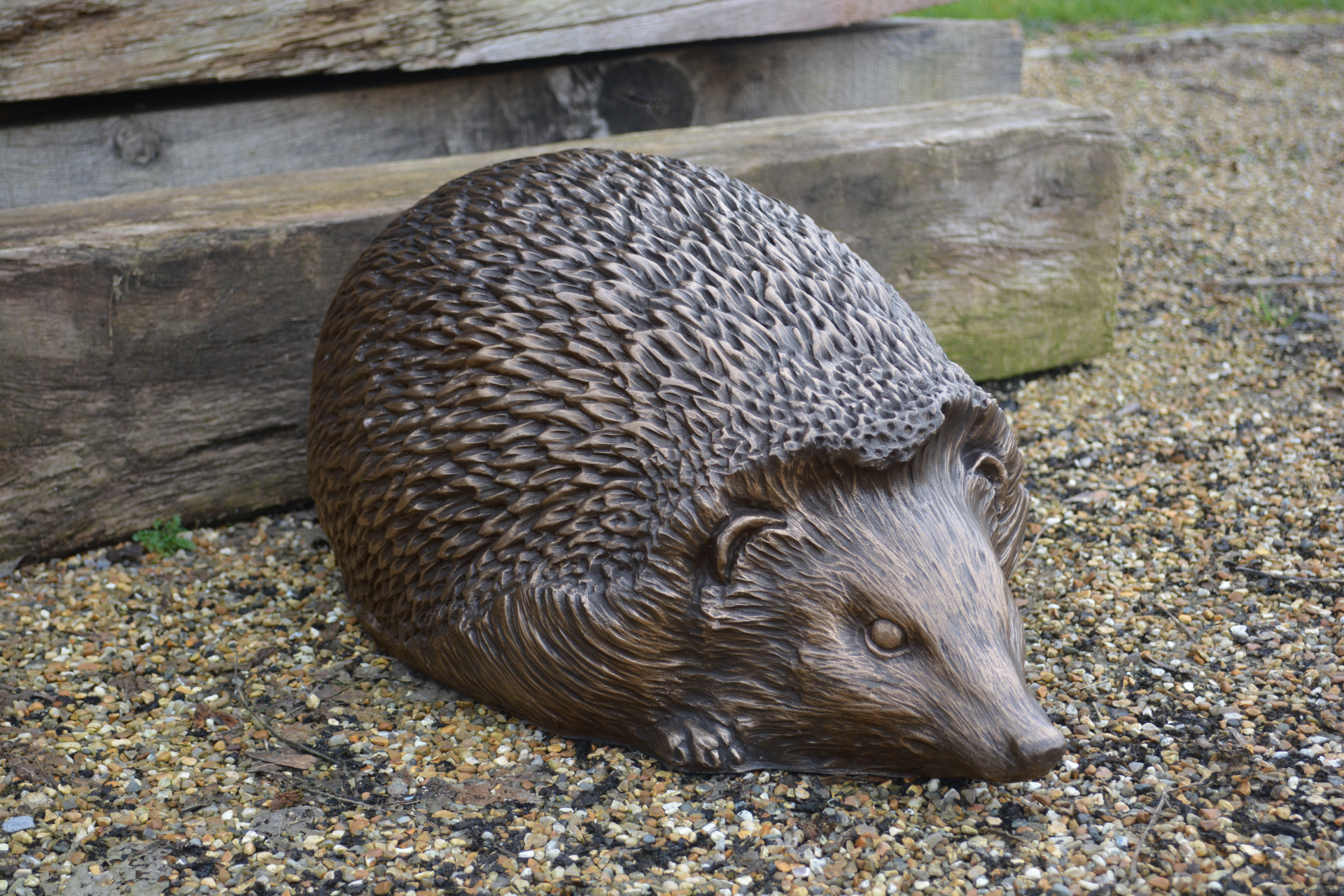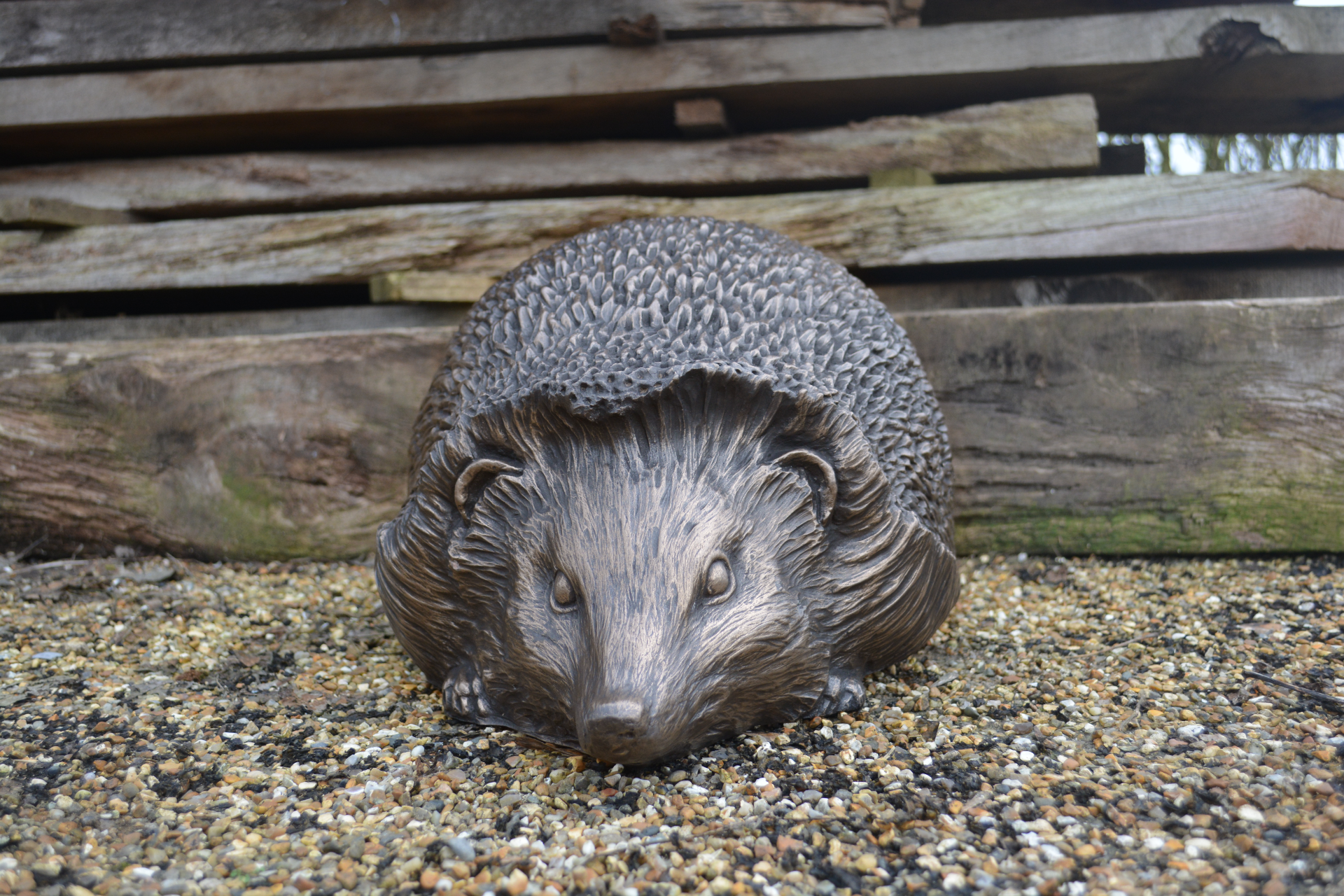 A beautiful handmade sculpture of a hedgehog in a pewter or bronze finish. A wonderfully decorative piece that will look at home in any garden.