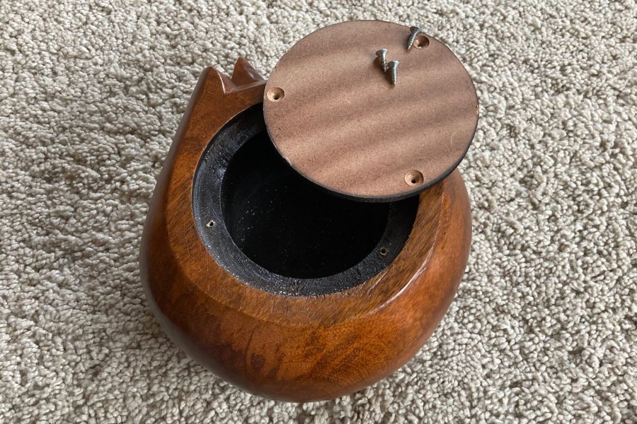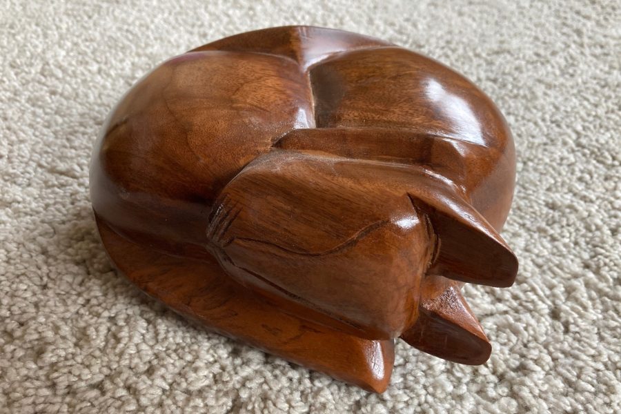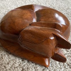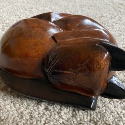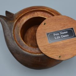 Our beautiful hand-carved wooden sleeping cat ashes caskets are made specially to go in the home. Available in three different finishes: Light Brown, All Black and Natural Wood with Black Tips.